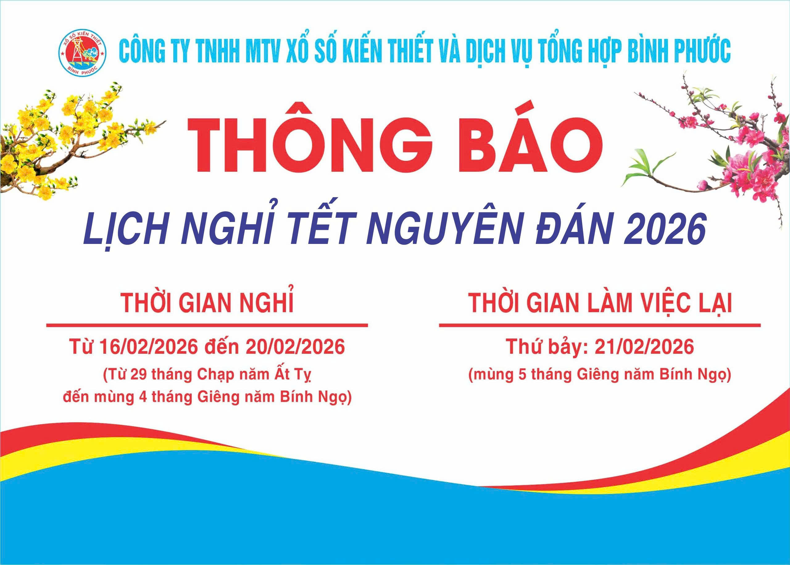 Thông báo lịch nghỉ Tết Nguyên Đán Bính Ngọ năm 2026